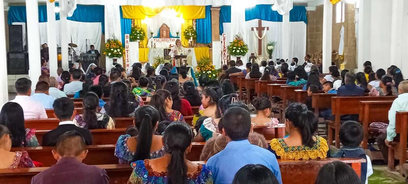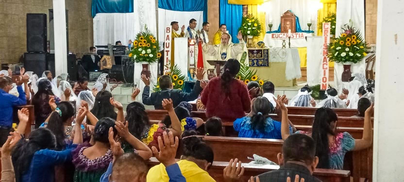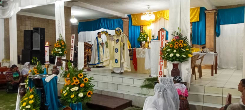 Seguidamente, se comenzó con las celebraciones litúrgicas en la sede de la parroquia de la Santísima Trinidad de Uspantán, El Quiché.