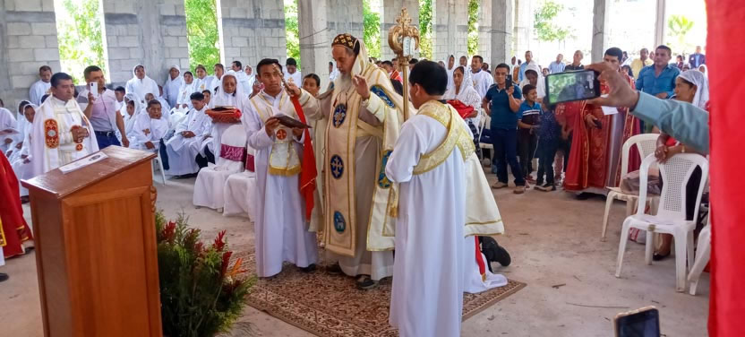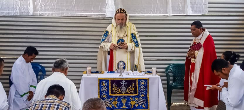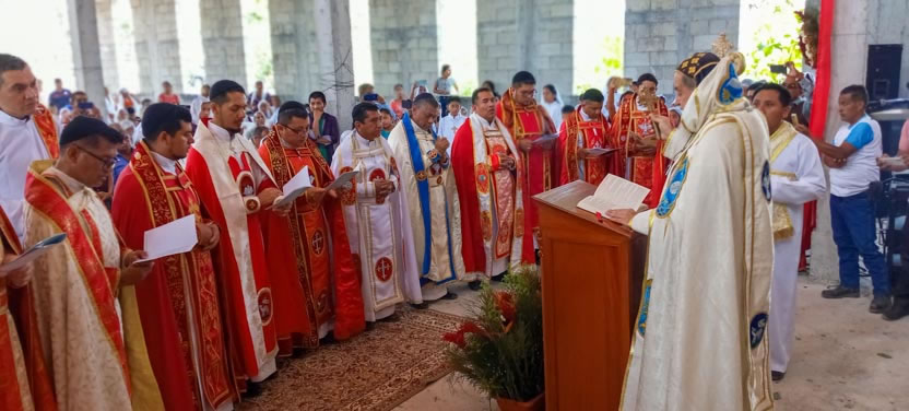 Seguidamente, el arzobispo presidió la celebración de la divina liturgia, la cual fue concelebrada por el padre Óscar Guardado, encargado pastoral local.