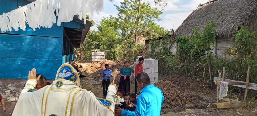 El lunes 10 de abril, por la mañana, llegó el arzobispo hasta el lugar en donde se está construyendo el templo de la comunidad de Sayajché, para presidir el decanato de El Petén.