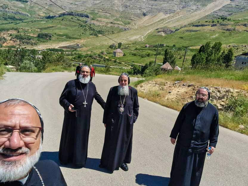 El lunes 5, por la mañana, en lo que comienzan los trabajos formales del Santo Sínodo, Su Santidad el Patriarca invitó a varios de los Arzobispo presentes a ir a un paseo en el Monte Líbano, donde hay manantiales que se forman al derretirse la nieve. La travesía llevó desde la costa del Mediterraneo, hasta la vecidad de Zahle, en donde está la frontera con Siria. Nuestro arzobispo fue invitado por Su Santidad para participar en la gira. |