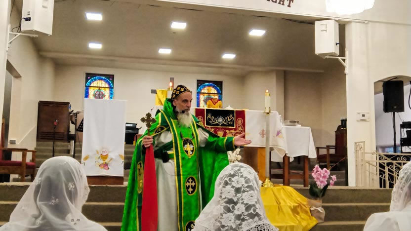 Seguidamente, el arzobispo presidió la celebración de la divina liturgia, la cual fue concelebrada por el Padre Jorge.