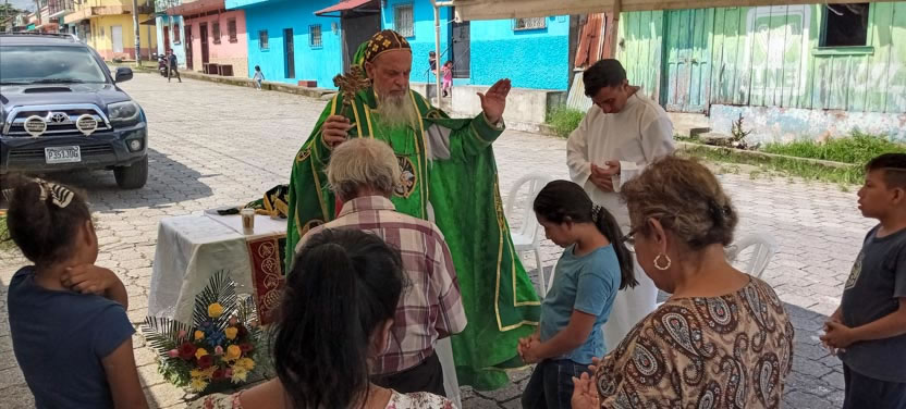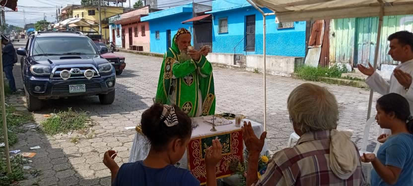 Finalmente, con el pequeño grupo de hermanos, el arzobispo, en una calle, presidió la celebración de la divina liturgia.