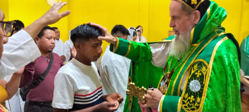 Dentro del marco de la celebración de la divina liturgia, se administró la confirmación y el envío misionero a un hermano de la comunidad de Lupinah, que se ha renovadorecientemente.