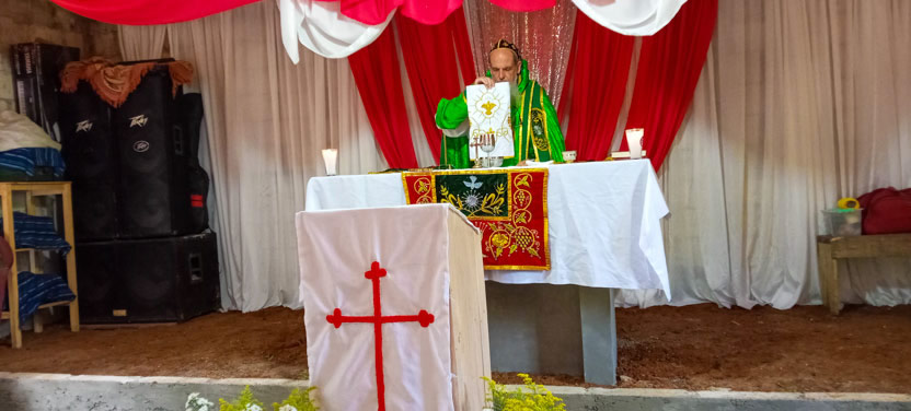 Los hermanos, con esfuerzo y ayudas recibidas, están logrando construir el templo de la comunidad y el arzobispo hizo la bendición de los trabajos realizados. |