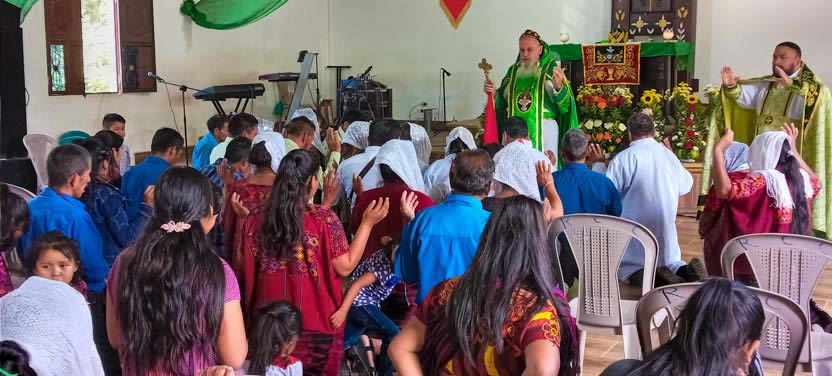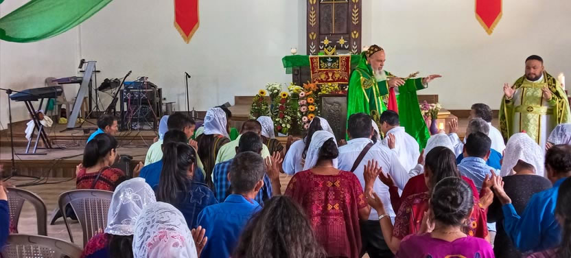 | 11: DIVINA LITURGIA CON LOS HERMANOS DE LA COMUNIDAD DE EL ARENAL, SAN GASPAR IXCHIL, HUEHUETENANGO. |