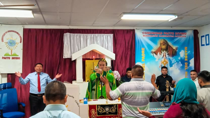 En la noche del miércoles 23 de agosto, el arobispo llegó hasta la sede de la comunidad Pacto Divino, en el centro de Los Ángeles, para hacer la visita mensual.