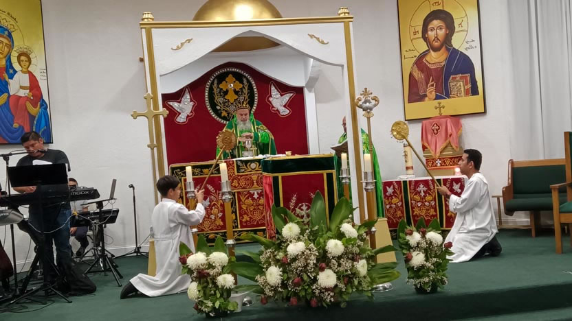 La visita a la comunidad poder del Espíritu Santo culminó con la celebración de la divina liturgia, presidida por el arzobispo.