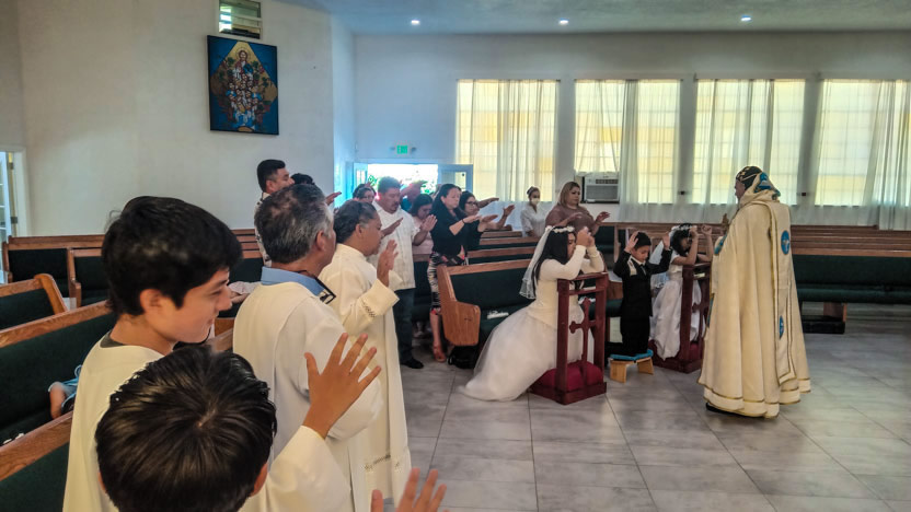| 26: COMUNIÓN SOLEMNE DE TRES MIEMBROS DE LA PARROQUIA DE SAN MIGUEL ARCÁNGEL, LOS ÁNGELES. |