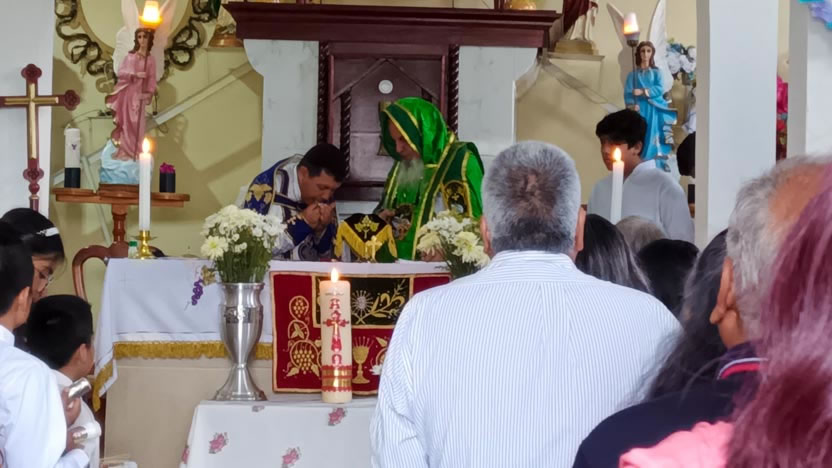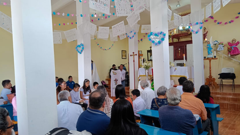 También, dentro del marco de las celebraciones litúrgicas, se administraron los sacramentos de la reconciliación al niño Miguel Aarón, hijo de Elías e Isabel, que contrajeron matrimonio el año pasado.