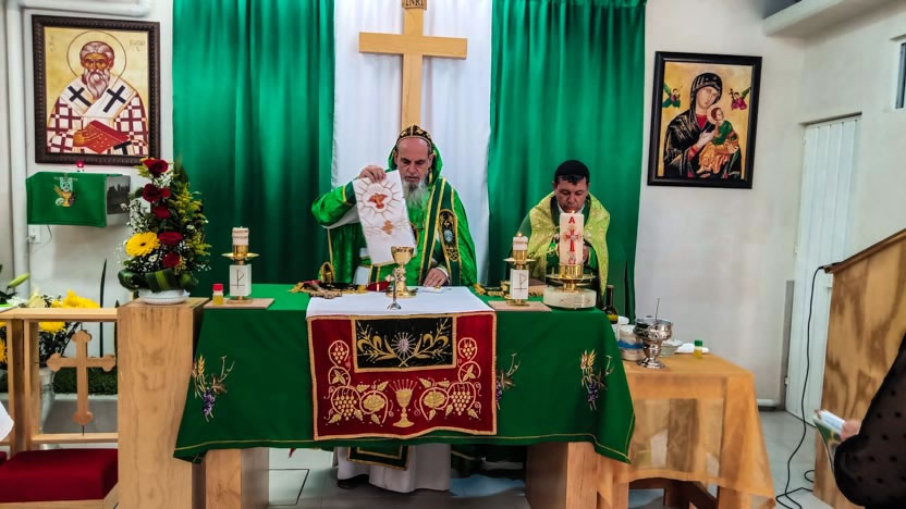 El momento culminante de la visita lo tuvo la celebración de la divina liturgia, la cual fue presidida por el arzobispo y fue concelebrada por el padre Henry.