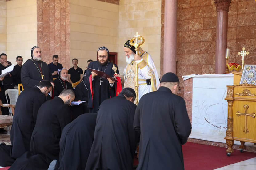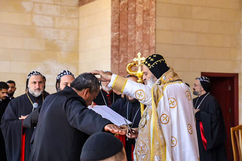 | 12: DOS DE LOS TRES OBISPOS ELECTOS SON ORDENADOS MONJES POR SU SANTIDAD EL PATRIARCA, DAMASCO. |
