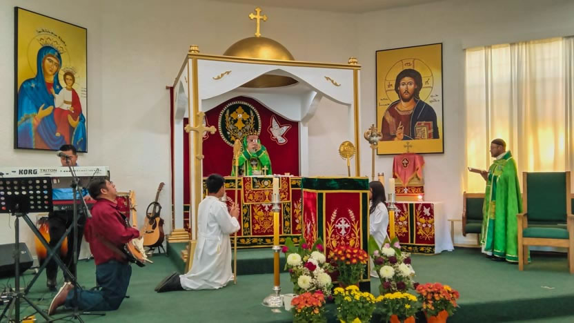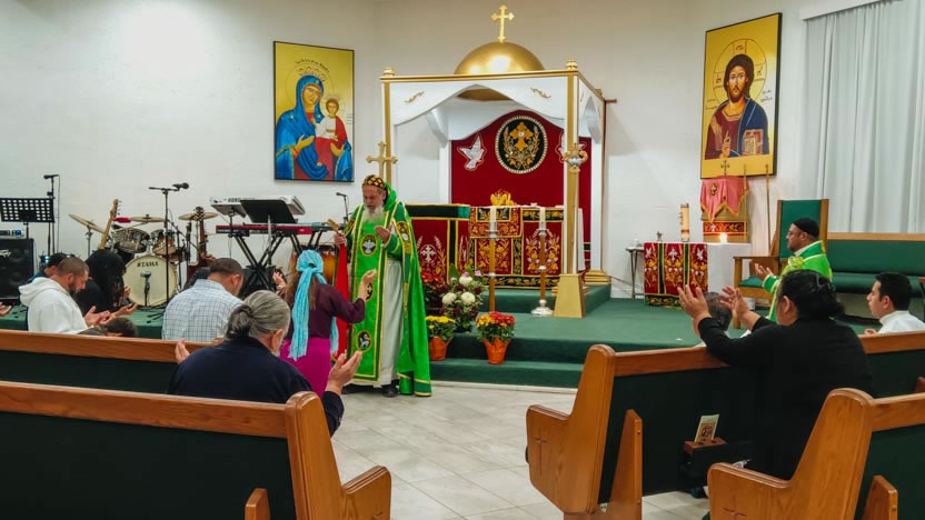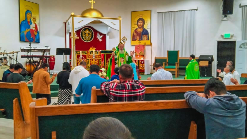 | 15: DIVINA LITURGIA EN LA SEDE DE LA PARROQUIA SAN MIGUEL ARCÁNGEL, EAST RANCHO DOMÍNGUEZ, LOS ÁNGELES. |