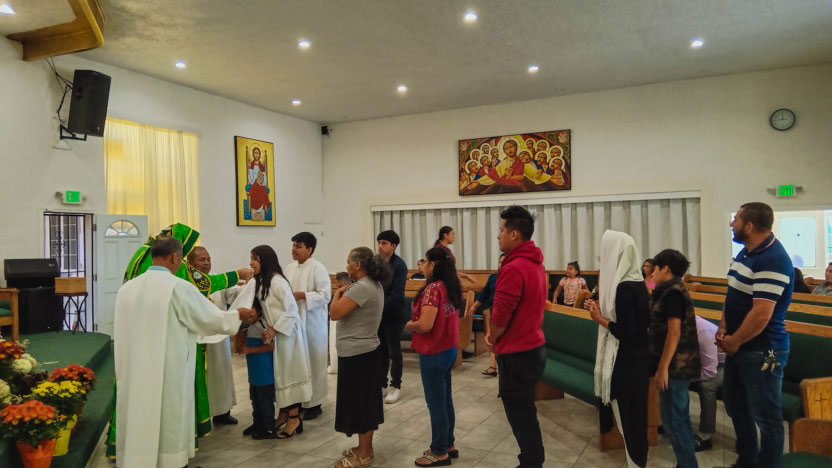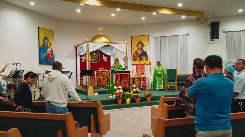 La visita a la comunidad Santa María de Guadalupe culminó con la celebración de la divina liturgia, presidida por el arzobispo.