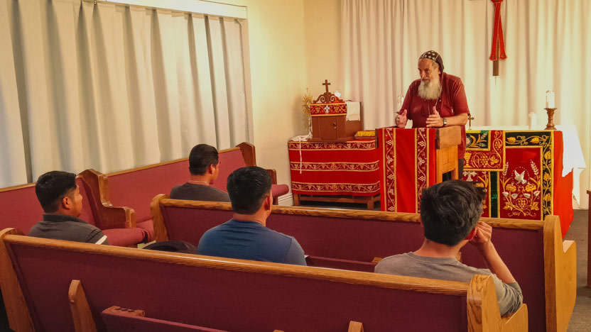 El arzobispo, al saber de su presencia les invitó a visitar y, como resultado se estableció que, con la ayuda de Dios, a partir del 5 de noviembre, cuando el arzobispo venga, se celebrará una misa para los hermanos de Tzanixnam que puedan participar en la liturgia, los domingos a las 8.30 de la mañana. |