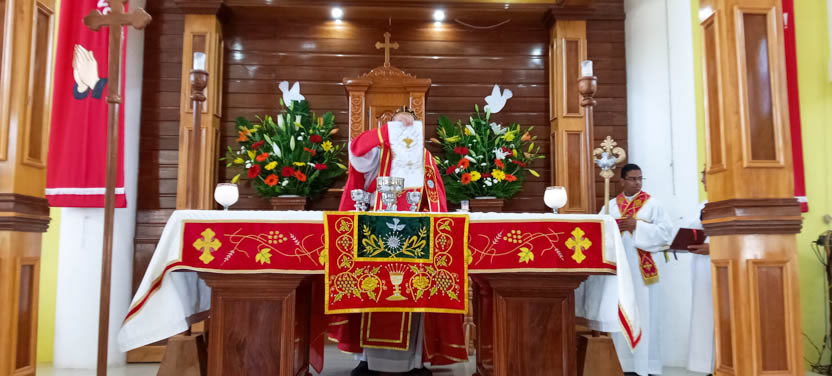 Allí presidió la celebración del decanato del nor oriente de Huehuetenango, con participantes de la parroquia local y de la parroquia Santísima Trinidad de Río Hermín. |