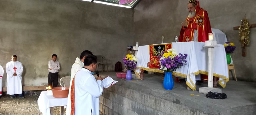 Los hermanos, después de muchos esfuerzos, han logrado construir el templo, habiendo querido que fuera el arzobispo quien celebrara la primera liturgia en el mismo, aún cuando aún están con trabajos de construcción. |