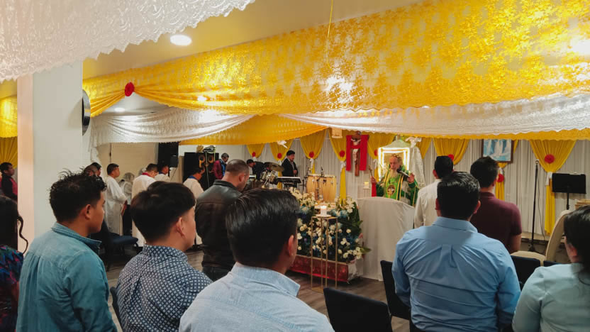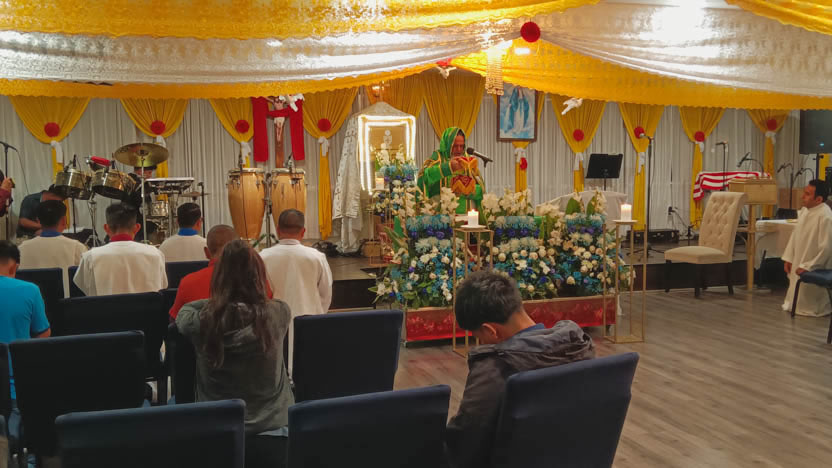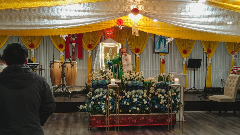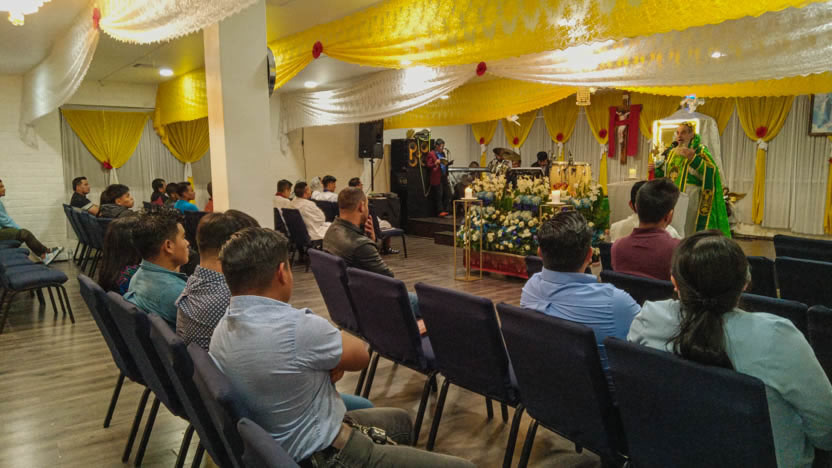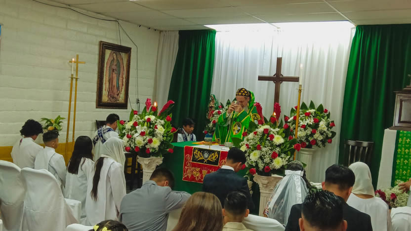 El sábado 4 de noviembre, hacia el mediodía, el arzobispo llegó hasta la sede de la comunidad Santa María de Guadalupe de Riverside, para celebrar la liturgia.