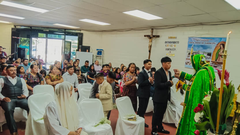Cinco hermanos de la comunidad Santa María de Guadalupe: Alexis, Candelaria, Balbino, Antonio y Alex, fueron preparados para hacer la primera reconciliación y recibir la comunión solemne.