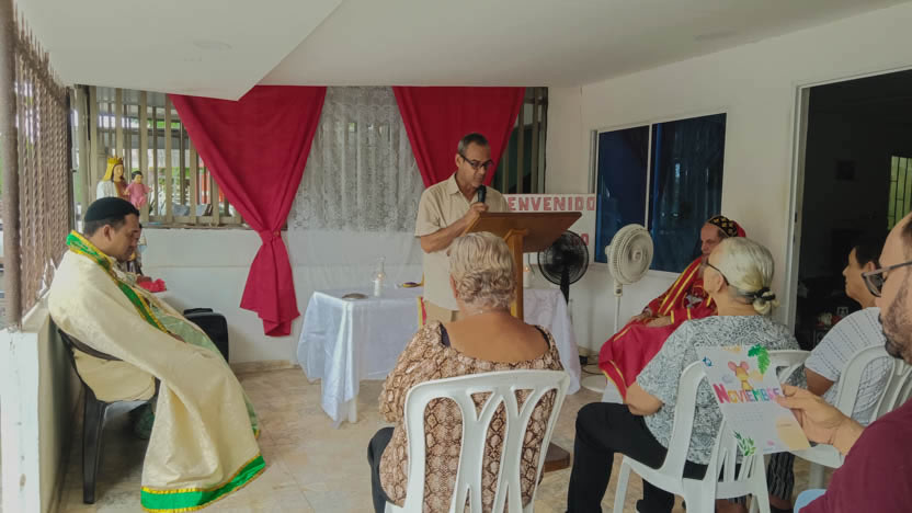 A su llegada, el Padre Edisson y la coordinadora de la comunidad local, dieron la bienvenida al arzobispo, haciendo una pequeña reseña del origen de la comunidad. |