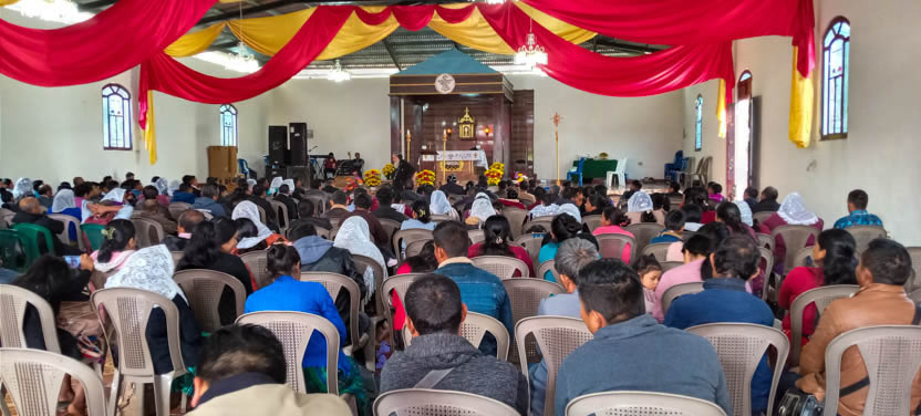 Le recibió el padre Jeiner, encargado de la comunidad, junto a varios fieles, que salieron al encuentro de la comitiva, con cantos y vítores, expresando y identificación con la iglesia. |