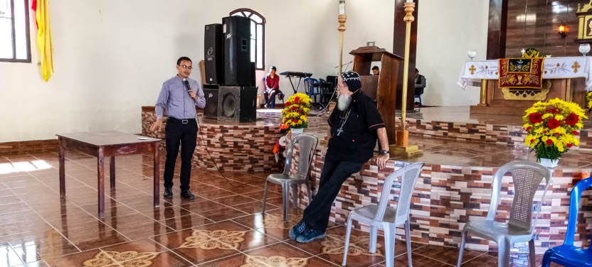 Una vez llegados a la sede en donde la misión San Pedro y San Pablo tiene su sede, tanto el padre Jeiner como los líderes de la comunidad, dieron la bienvenida al arzobispo.