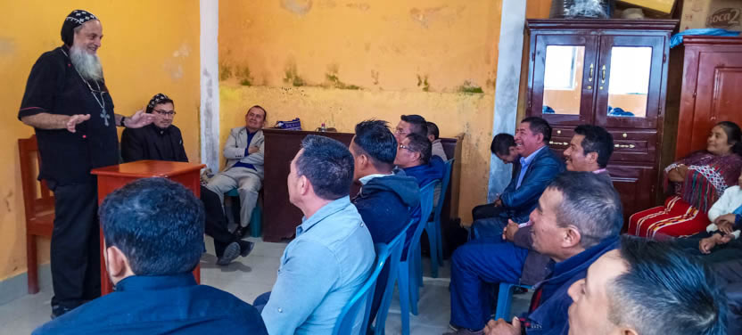 Junto al arzobispo llegaron, el monje José, obispo electo de la diócesis del norte de Guatemala y los padres Norvin, encargado pastoral local y José Bailiner, párroco de Chajul. |