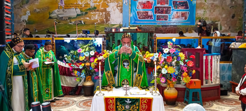 La visita a la comunidad Sagrada Familia de Cunén, culminó con la celebración de la divina liturgia, la cual fue presidida por el arzobispo.