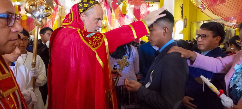 Después de la homilía, se pidió la administración de la confirmación de la unción con el santo crisma y, después de explicar sus implicaciones, el arzobispo procedió a administrarla. |