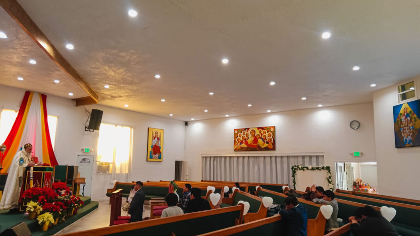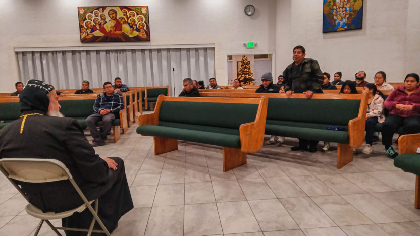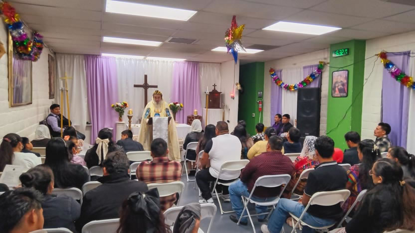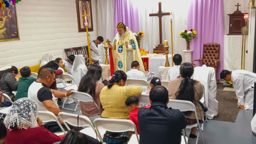 El domingo, al caer el día, el arzobispo llegó hasta la comunidad Santa María de Guadalupe, ubicada en la ciudad de Riverside, para celebrar los divinos misterios.