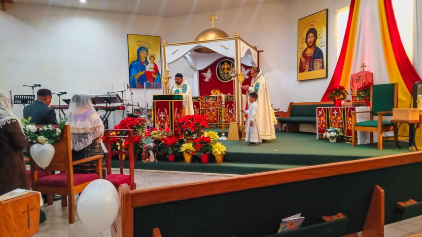Las actividades en la comunidad de Santa María de Guadalupe culminaron con la celebración de la divina liturgia, la cual fue presidida por el arzobispo.