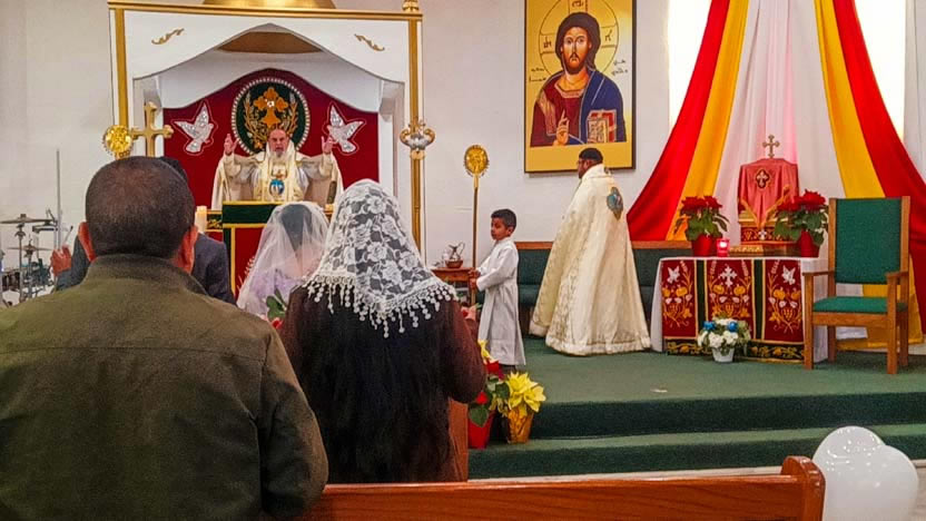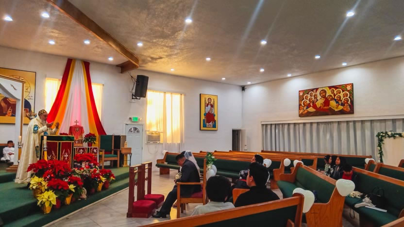 | 11: DIVINA LITURGIA CON OCASIÓN DE LA BODA DE BALTAZAR Y FLORA, PARROQUIA SAN MIGUEL, EAST RANCHO DOMÍNGUEZ. |