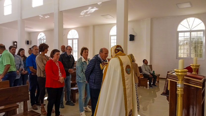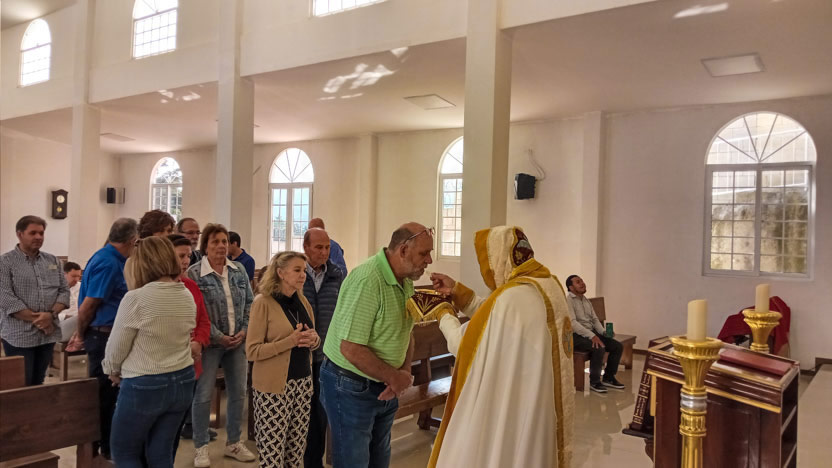 La visita culminó con la celebración de la divina liturgia, en cuyo marco se realizó la comunión solemne de los seis hermanos que habían sido preparados.