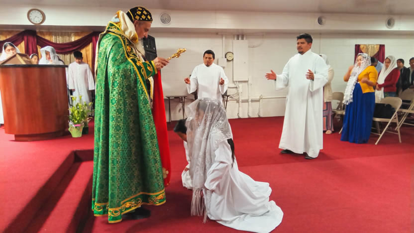 Una niña, hija de miembros de la comunidad La Voz del Espíritu Santo, fue presentada, para que se le administraran los sacramentos de la iniciación cristiana.