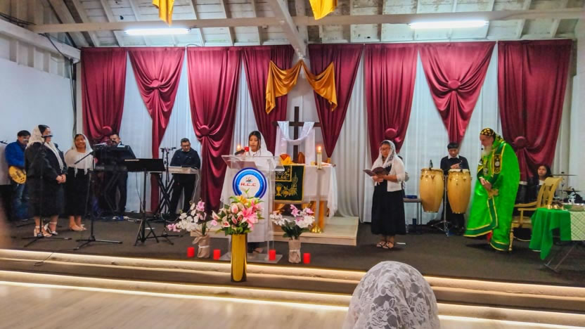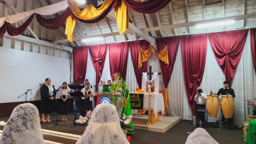 La visita a la comunidad Poder del Espíritu Santo culminó con la celebración de la divina liturgia, la cual fue presidida por el arzobispo y contó con la participación de los ministros de la comunidad.