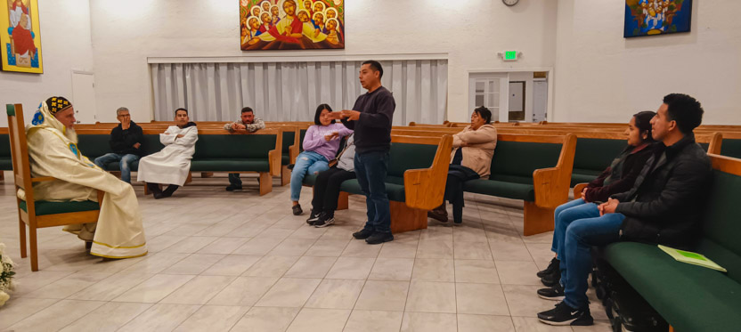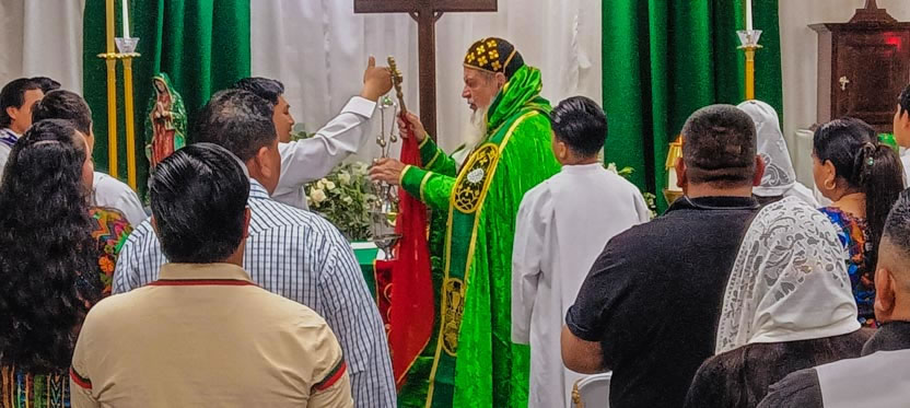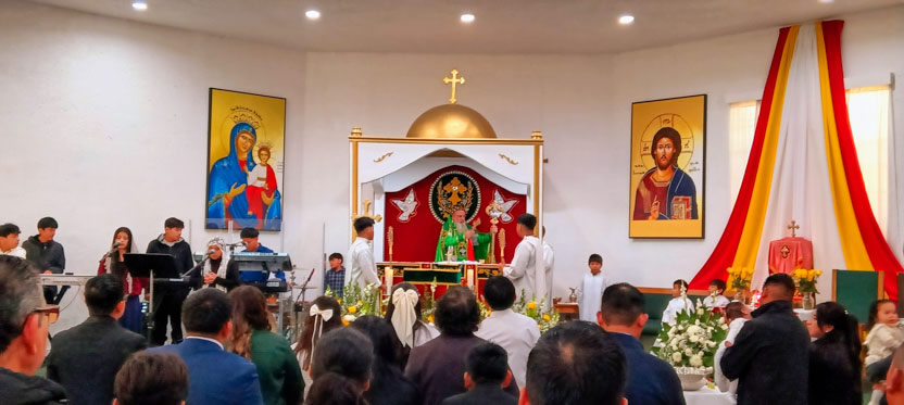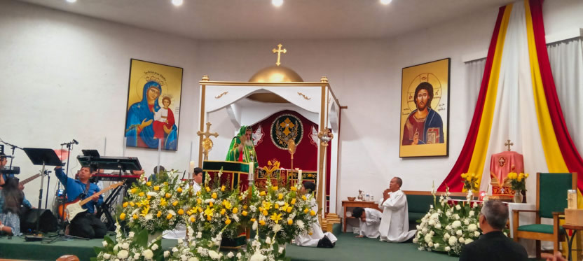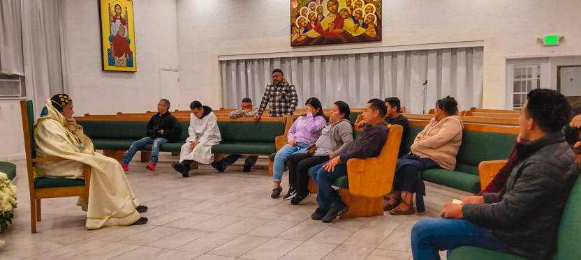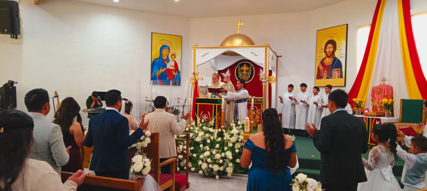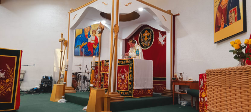 La visita a la comunidad Poder del Espíritu Santo culminó con la celebración de la divina liturgia, presidida por Mor Santiago Eduardo. Él estuvo acompañado por los hermanos Edgar y Jaqueline.