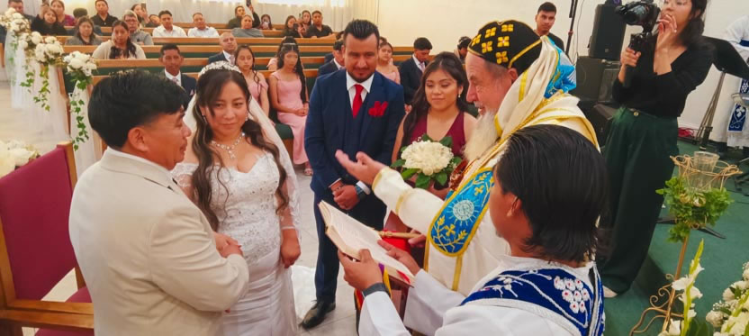 Luego, administró a los contrayentes el sacramento. |