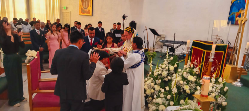 Después de la celebración del matrimonio, se continuó con la celebración de la divina liturgia, la cual presidida por el arzobispo.