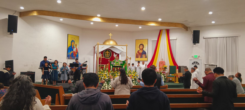 La visita a la comunidad Santa María de Guadalupe de Riverside, concluyó con la celebración de la divina liturgia, la cual fue presidida por el arzobispo.