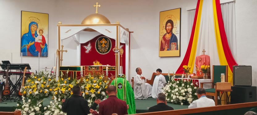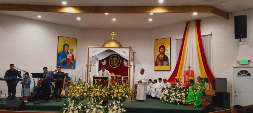 | 01: DIVINA LITURGIA EN LA ASAMBLEA DE LA PARROQUIA SAN MIGUEL ARCÁNGEL, EAST RANCHO DOMÍNGUEZ. |
