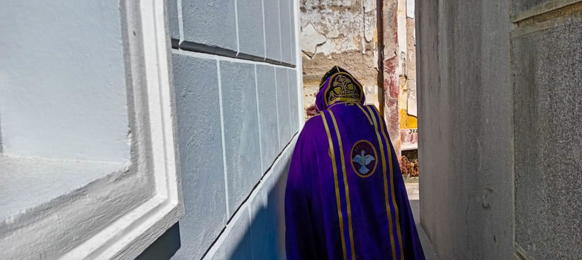 Terminada la celebración de la divina liturgia, en la que participaron más de 40 familiares del arzobispo, se hizo la bendición del mausoleo que había sido remozado.