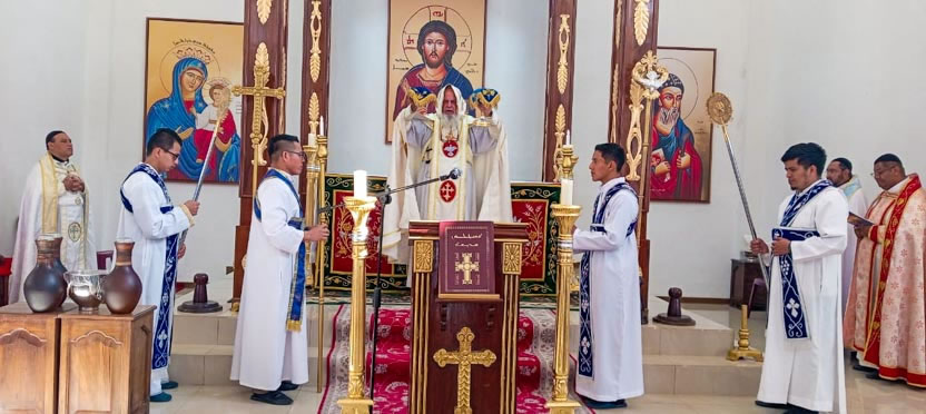El arzobispo en el centro, Mor Marcos y Manuel y José Wilfredo a la izquierda y Mor Andrés Orlando al lado derecho. |