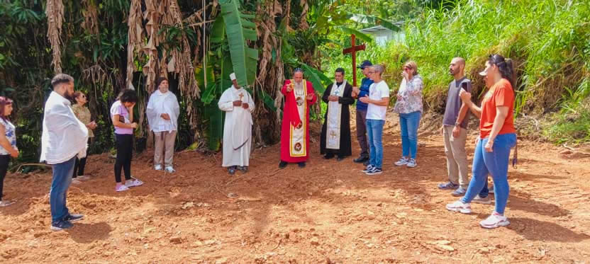 El sábado 26, la visita comenzó con las oraciones de bendición del nuevo predio adquirido recientemente, para construir la sede de la parroquia y de la misión. |