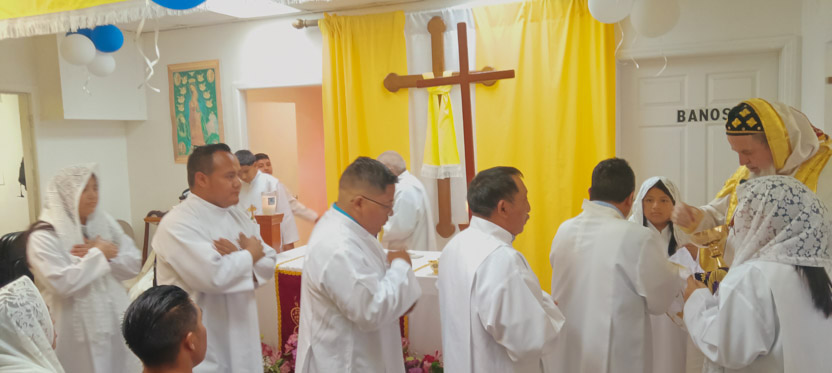 Después de que estos expresaron su disponibilidad a vivir de acuerdo a la fe, se les impartió la bendición para ejercer los ministerios que les han sido confiaos. |