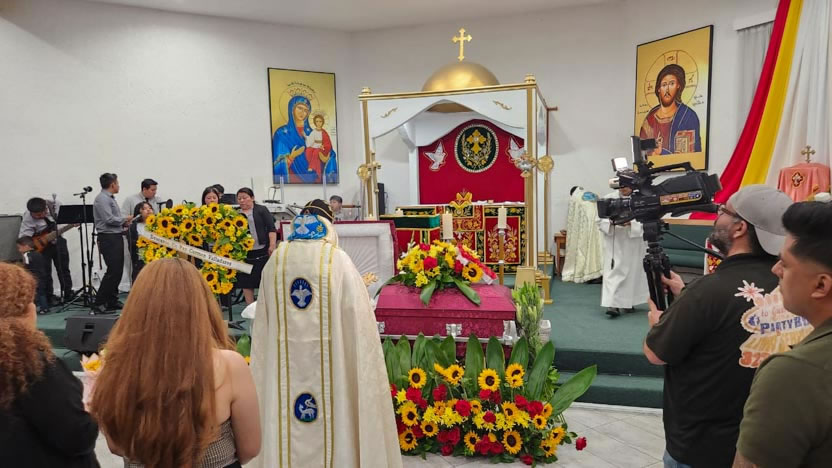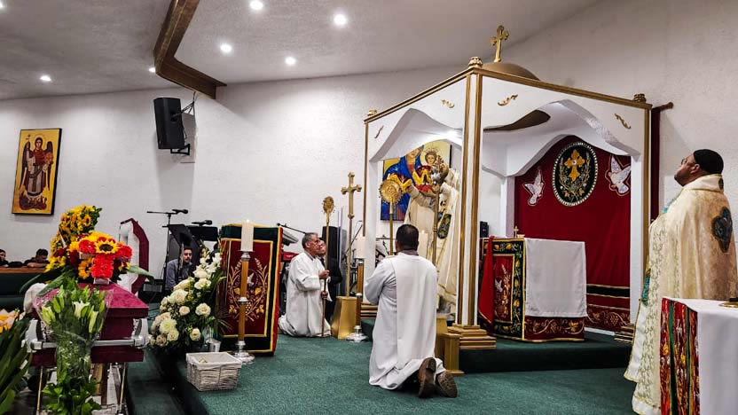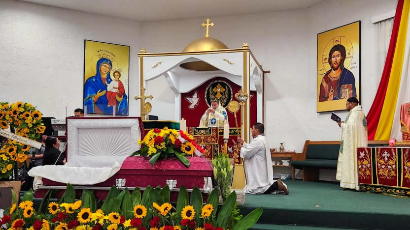 Al terminar la divina liturgia, el arzobispo hizo la bendición del féretro, como inicio del velatorio que seguiría por la hermana Carmen de Gutiérrez.
