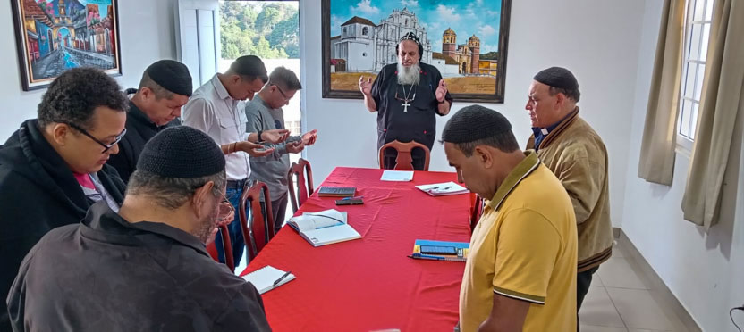 Después de orar y hacer la bienvenida, los líderes de las diferentes comunidades y los presbíteros que ejercen el ministerio en El Slavador, presentaron el informe de la situación de sus comunidades. |