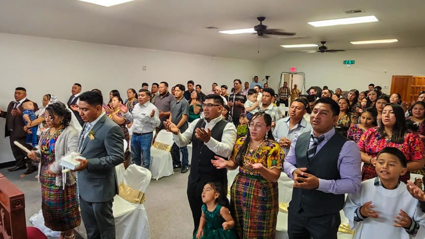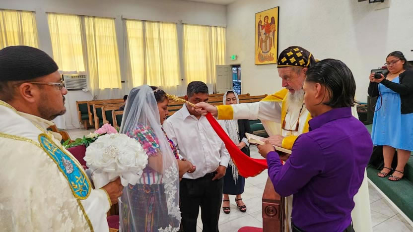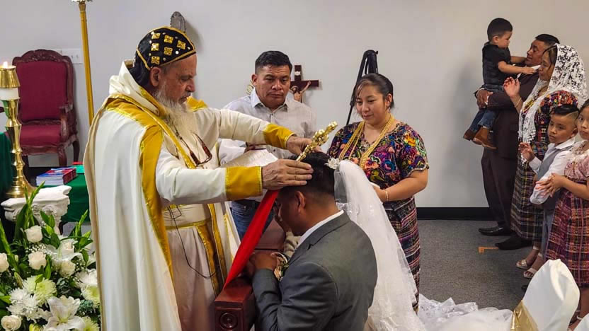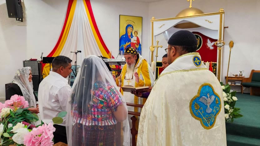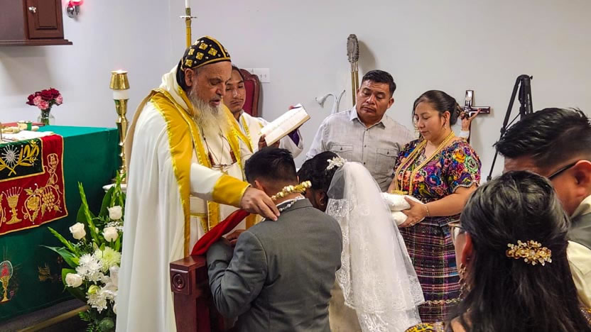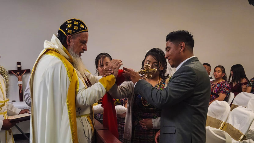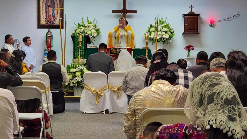 El centro de la visita del arzobispo a la comunidad Santa María de Guadalupe fue la celebración del matrimonio entre Edmundo y Rosa, después de una cuidadosa preparación.