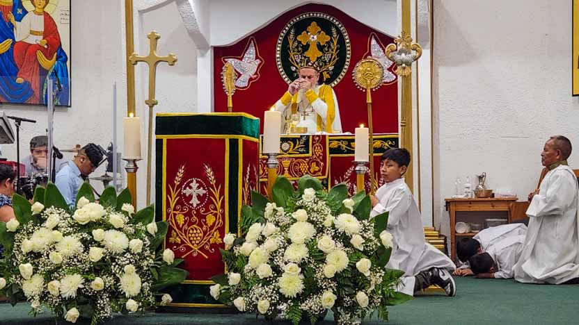 La visita sabatina del arzobispo a la comunidad Santa María de Guadalupe culminó con la celebración de la divina liturgia, la cual fue presidida por él y contó con la participación activa de todos los hermanos.