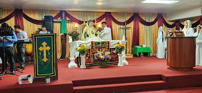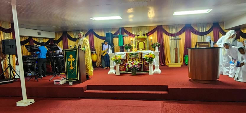 La visita a la comunidad Cristo Rey culminó con la celebración de la divina liturgia, la cual fue presidida por el arzobispo y contó con la participación de numerosos fieles.