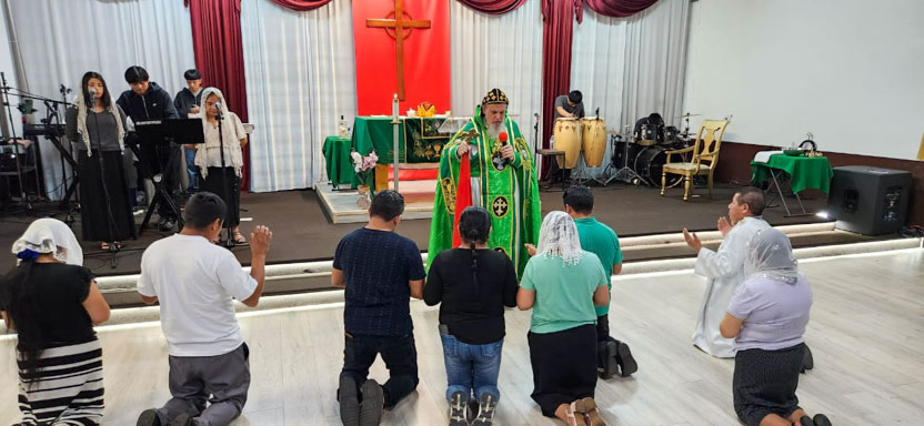 La visita a la comunidad Ministerio El Pescador concluyó con la celebración de la divina liturgia, la cual fue presidida por el arzobispo y contó con la activa participación de los fieles.