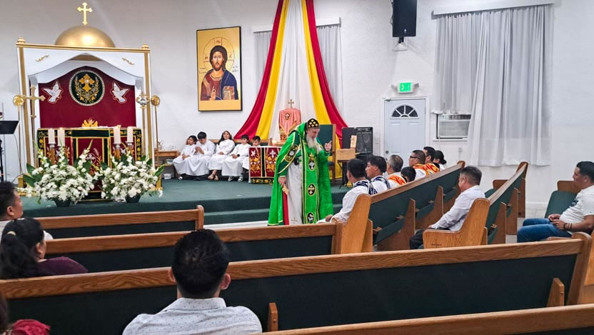 La visita a la comunidad concluyó con la celebración de la divina liturgia, la cual fue presidida por el arzobispo y contó con la devota participación de los fieles.